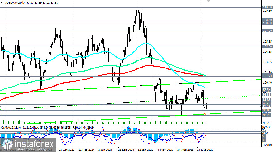 Лишь только рост в зону выше ключевых долгосрочных уровней сопротивления 101.15 (ЕМА200 на недельном графике), 101.35 (ЕМА144 на недельном графике) может окончательно вернуть индекс USDX в зону долгосрочного медвежьего рынка.