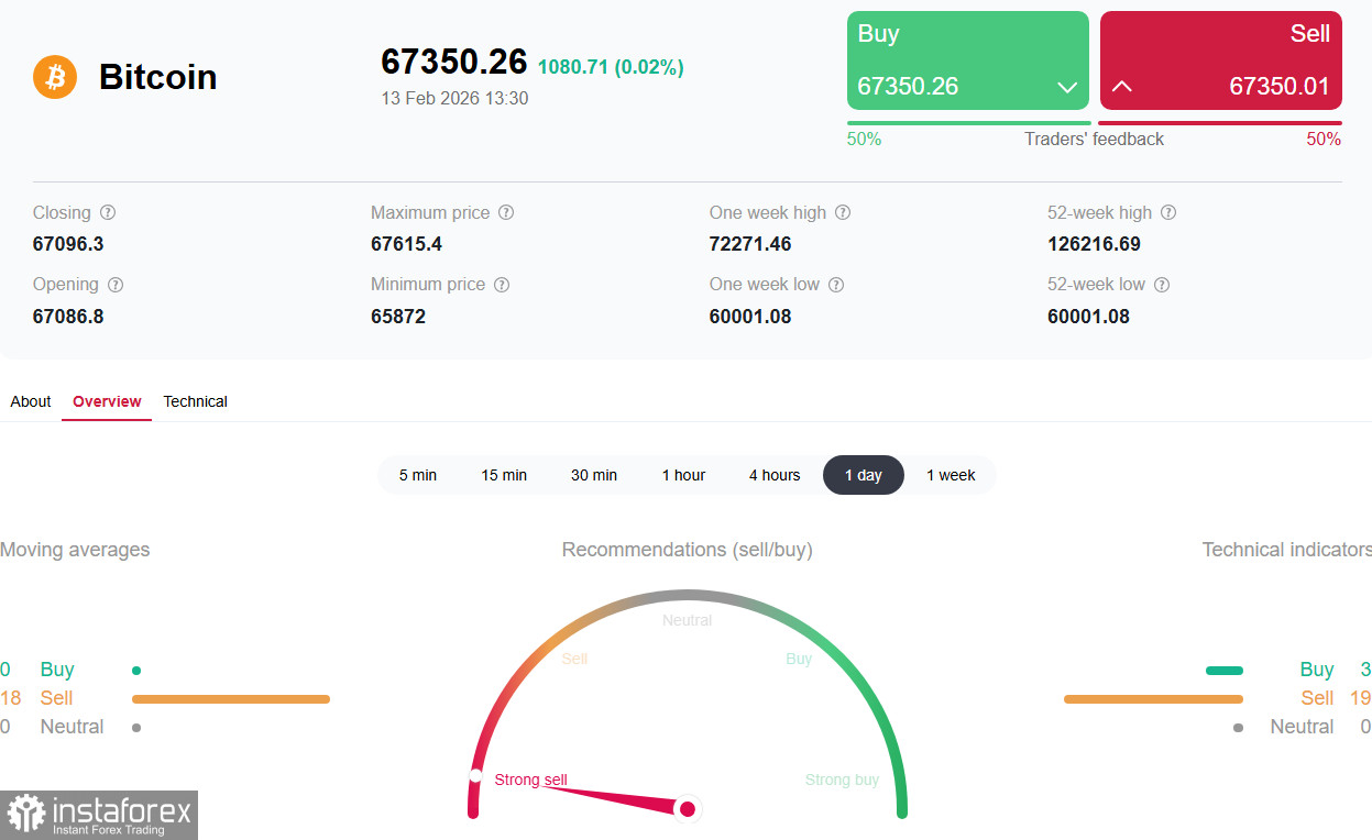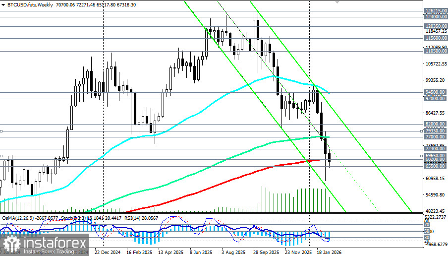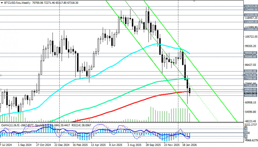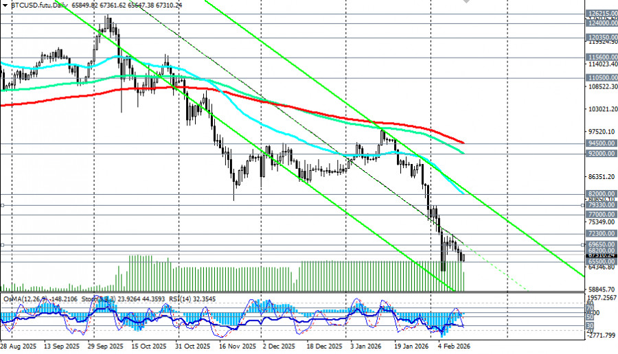 После резкого падения 5 февраля ниже 60000.00 биткоин частично восстановился до уровней 68000.00 – 70000.00, однако остается значительно ниже январских средних значений (около 83000.00).