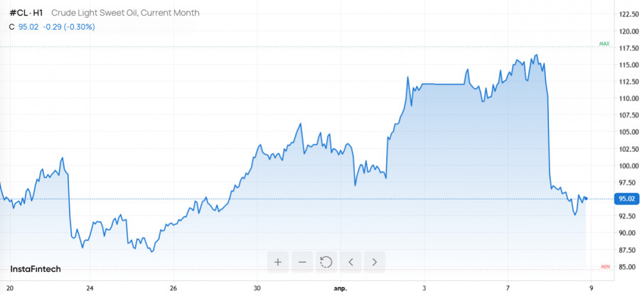 Сразу на этом фоне цены на нефть пошли вниз: по данным CNBC и Yahoo Finance, нефть West Texas Intermediate снизилась примерно на 15% – до $95,63 за баррель в ходе aftermarket-торгов. Brent упала около 16% – примерно до $91.