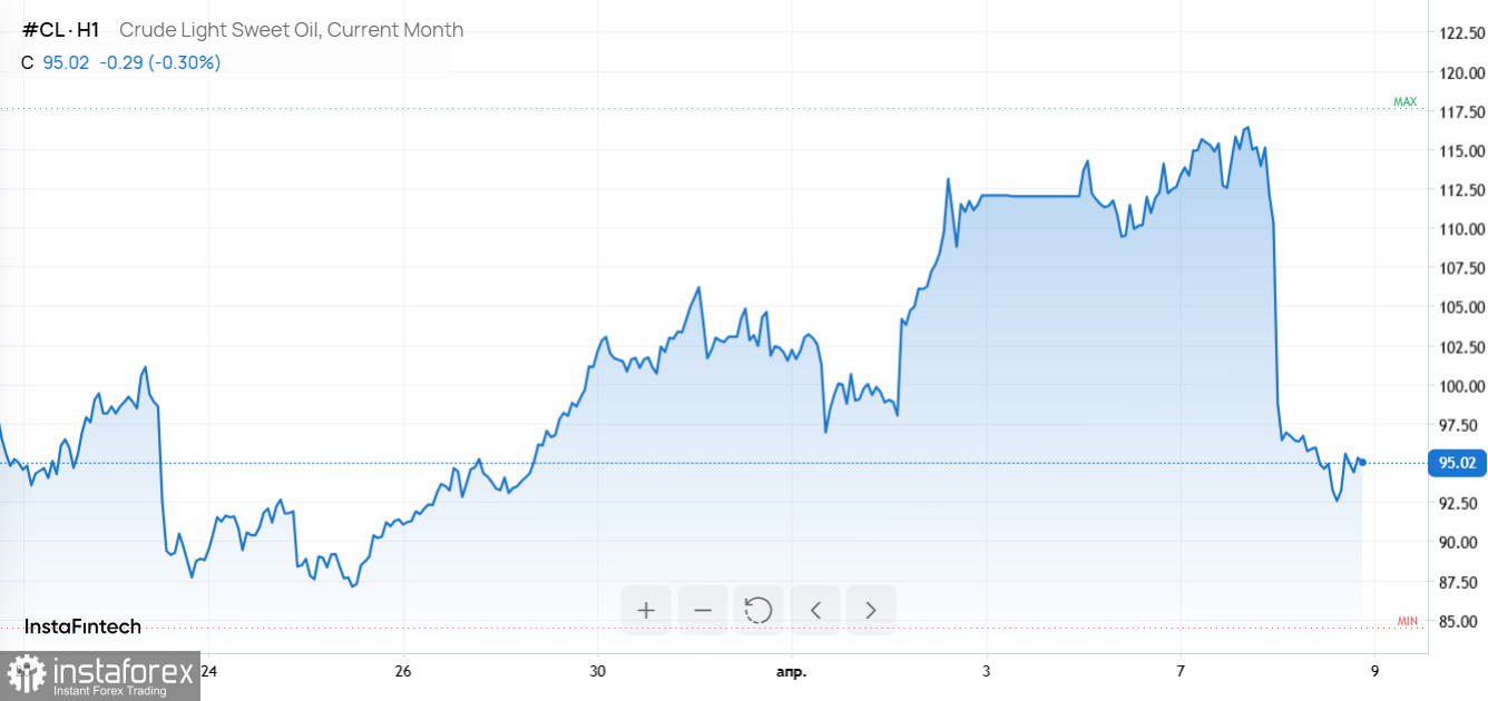 В ответ на эту информацию фьючерсы на американскую нефть резко снизились: эталонный сорт West Texas Intermediate вернулся к середине диапазона около $90 за баррель. При этом уровень всё ещё существенно выше довоенных значений, однако заметно ниже недавних максимумов, которые находились выше $110.