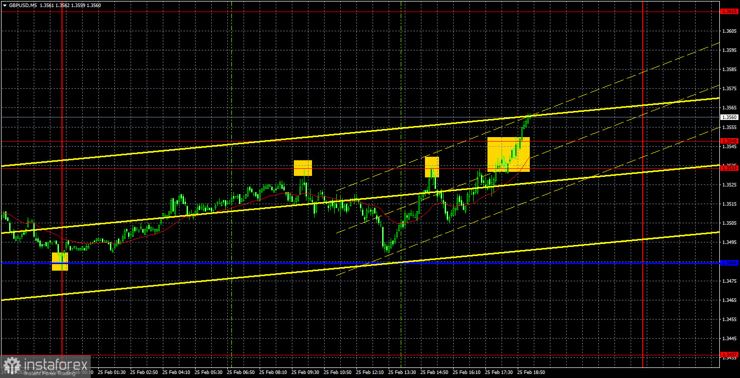 Торговые рекомендации и разбор сделок по GBP/USD на 26 февраля. Фунт прерывает проигрышную серию.