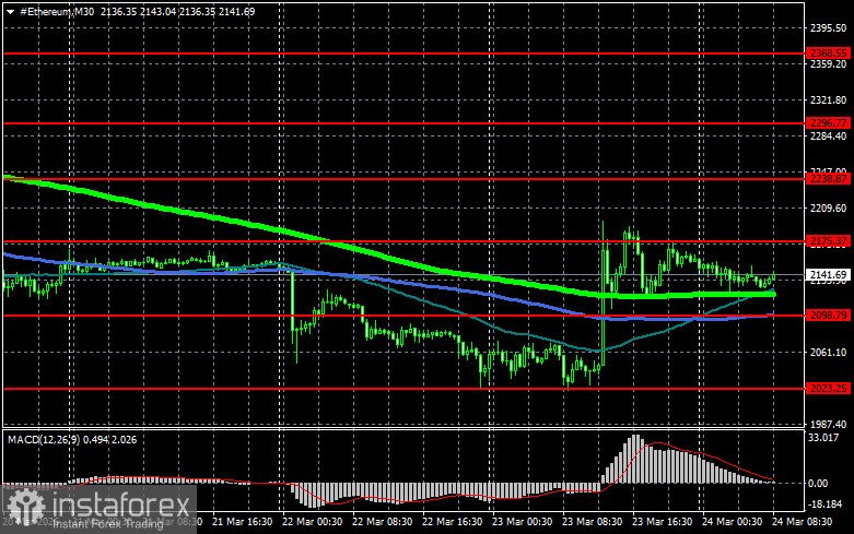 Что касается технической картины Ethereum, то очевидное закрепление выше уровня в $2175 открывает прямую дорогу на $2238. Самой дальней целью выступит максимум в районе $2296, преодоление которого будет означать укрепление бычьих настроений рынка и возврат интереса покупателей. В случае падения эфира покупателей жду на уровне $2098. Возврат торгового инструмента под эту область может быстро свалить ETH в район $2023. Самой дальней целью будет область $1915.