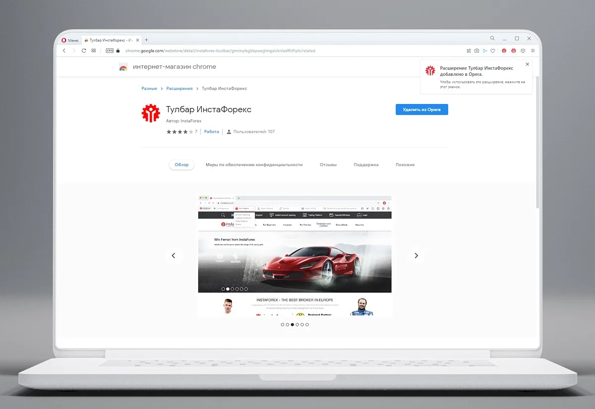 Панель инструментов от ИнстаФорекс для браузеров