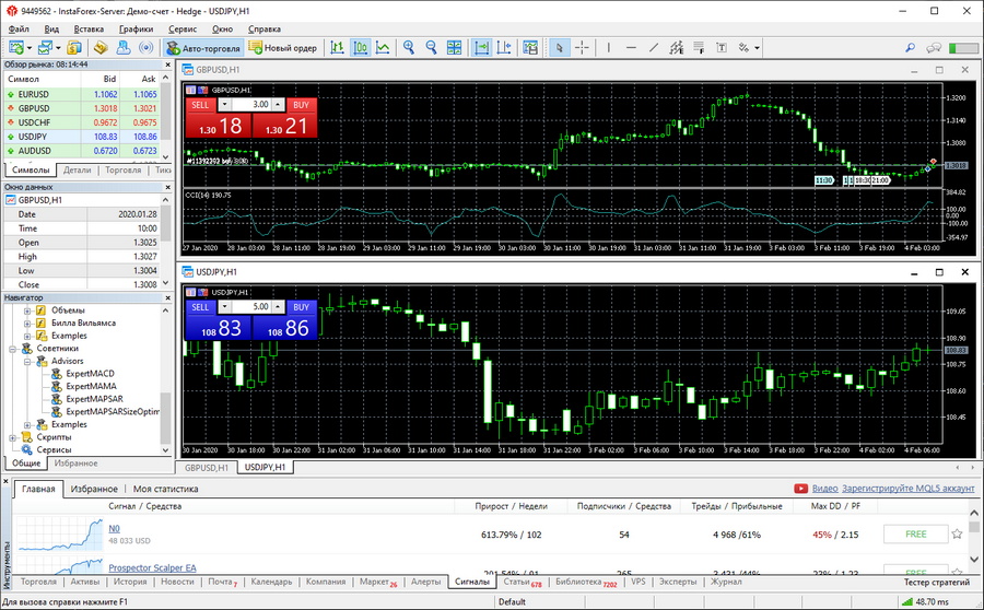 - Встроенный онлайн-магазин готовых торговых советников, индикаторов и скриптов
