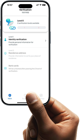 Верификация – подтверждение личных данных, указанных при регистрации счета. Существует два уровня верификации. На первом подтверждается личность владельца счета, на втором - адрес проживания.